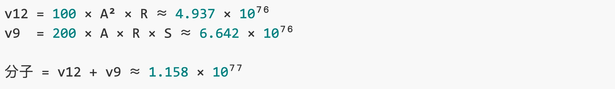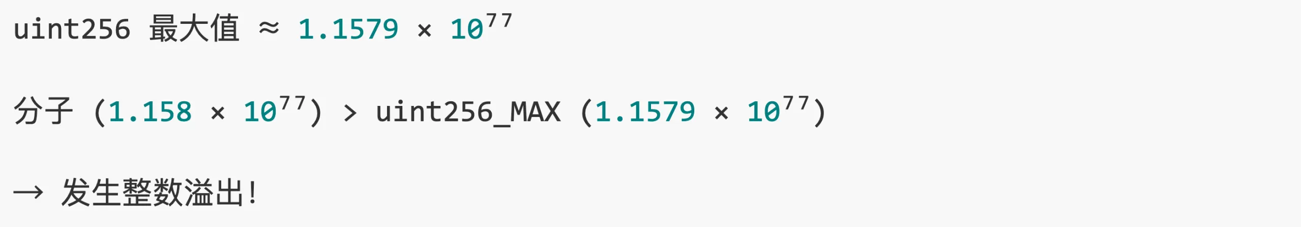 Vì kết quả của v12 + v9 vượt quá giá trị tối đa của uint256, nên đã xảy ra hiện tượng tràn số và quay vòng. Sau khi tràn số, tử số trở thành một giá trị cực nhỏ, và sau phép chia số nguyên, giá trị cuối cùng được tính toán